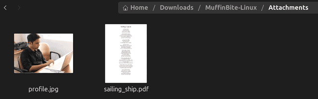 I have two files in my attachments folder, profile.jpg, and sailing_ship.pdf