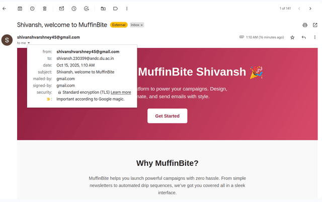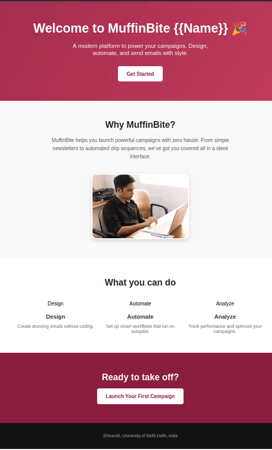 Enter subject line for the email: {{Name}}, welcome to MuffinBite.
