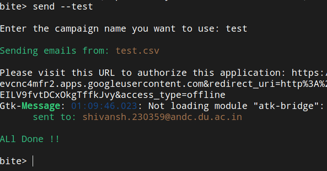 A browser window will open automatically, just visit the site and allow your own application to send the emails on your behalf.